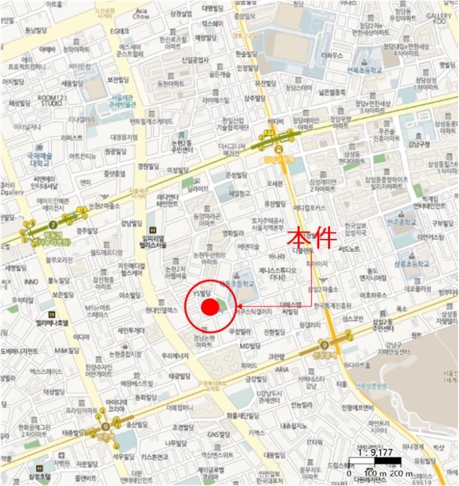 도로:남동측으로 노폭 약 4m 내외의 포장도로와 접하고 있으며, 인근 강남대로와 학동로 등 주요 간선도로와의 연결성이 좋아 차량 이동이 용이합니다.