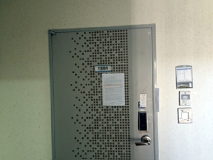 법원 자료에 따르면 '대항력 있는 임차인이 있을 수 있음'이라고 명시되어 있으며, 현장 방문 시 출입문에 안내문이 부착된 것으로 확인됩니다. 이는 임차인이 현재 거주 중이거나 권리관계가 복잡할 수 있음을 의미합니다.