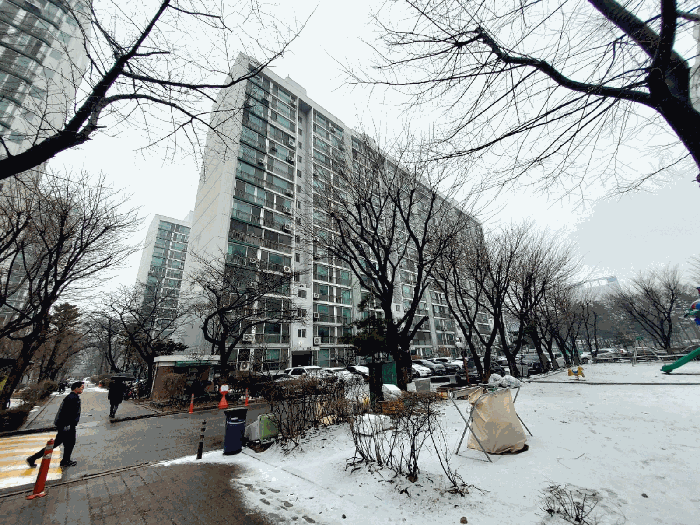 단지 내부는 포장도로가 잘 정비되어 있고, 외부 도로와의 연계성도 좋아 차량 이동이 편리합니다. 건물 외관은 세멘몰탈 위 페인팅 마감으로 처리되어 있으며, 내벽은 세멘몰탈 위 벽지, 타일 등으로 마감되어 있습니다.