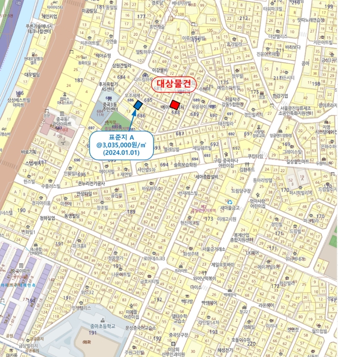 이 물건은 제2종일반주거지역(7층 이하)으로 지정된 곳에 위치해 있어 주거 환경이 안정적입니다. 인접한 서울중마초등학교는 교육 환경 측면에서 큰 장점이며, 주변에 단독주택과 다세대주택이 밀집해 있어 안정적인 수요를 기대할 수 있는 지역입니다.