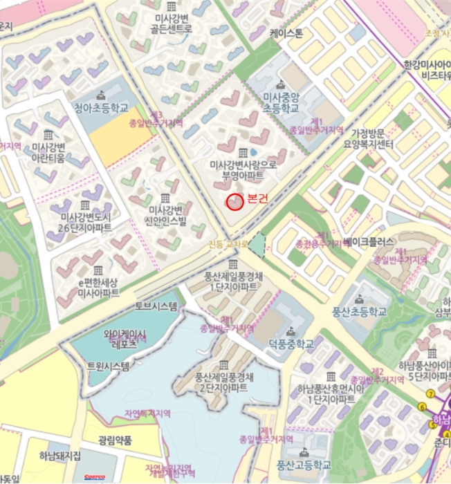 교통 환경도 우수한 편으로, 차량 접근이 용이하며 인근에 버스정류장이 있고 지하철 5호선 하남풍산역이 위치하고 있습니다. 서울 도심까지의 접근성도 양호해 출퇴근이나 도심 이동이 필요한 직장인들에게 편리합니다. 또한 외곽 공도와 연계된 단지 내 포장도로가 잘 조성되어 있어 교통 편의성이 뛰어납니다.