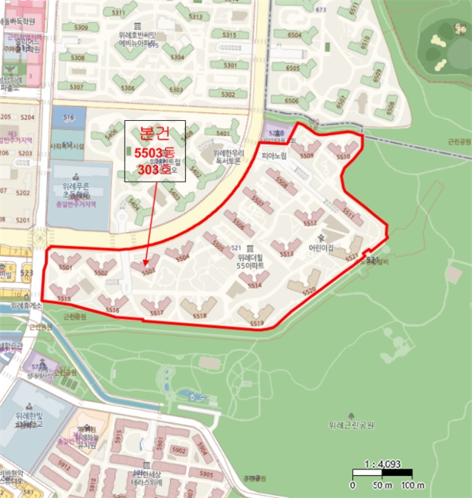 본 경매 물건은 전용면적 85.76㎡(약 26평), 공급면적 114㎡(약 34평)의 중형 아파트로, 3베이 구조의 방 3개, 화장실 2개 구성을 갖추고 있습니다. 특히 3층에 위치한 코너세대로, 남서향 배치로 일조량이 풍부하고 통풍이 우수합니다. 5503동은 총 15층 규모로, 저층이지만 너무 낮지 않은 3층이라 지상 조망과 프라이버시 모두 확보되어 있습니다.