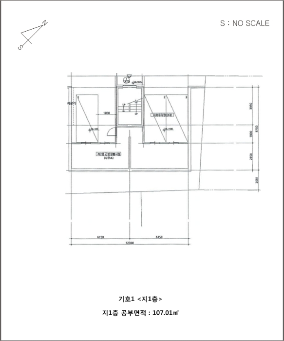 | 지하 1층 | 근린생활시설(사무소) | 원룸 주택 2가구(B01, B02호) | 107.01㎡(32.37평) |